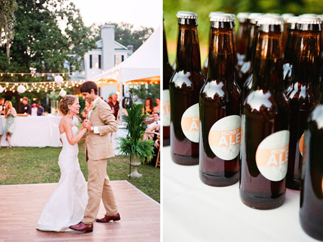 Sono dichiaratamente una fan dell'uso della frutta nelle decorazioni, e questa coppia ne fa un uso meraviglioso, accoppiandola a un tenero azzurro cielo/verde acqua. Tutto è stato preso in considerazione, dagli abiti del wedding party ai cuscini sui divani, dai libretti alle etichette delle bottiglie di birra fatta in casa usate come favor. Un gran bel risultato, fresco e raffinato senza essere forzato, che trovo davvero adorabile!